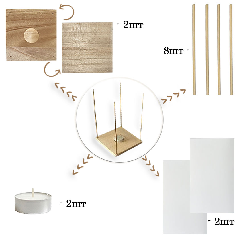 1. Деревянная основа — обеспечивает плавучесть и устойчивость фонарика.