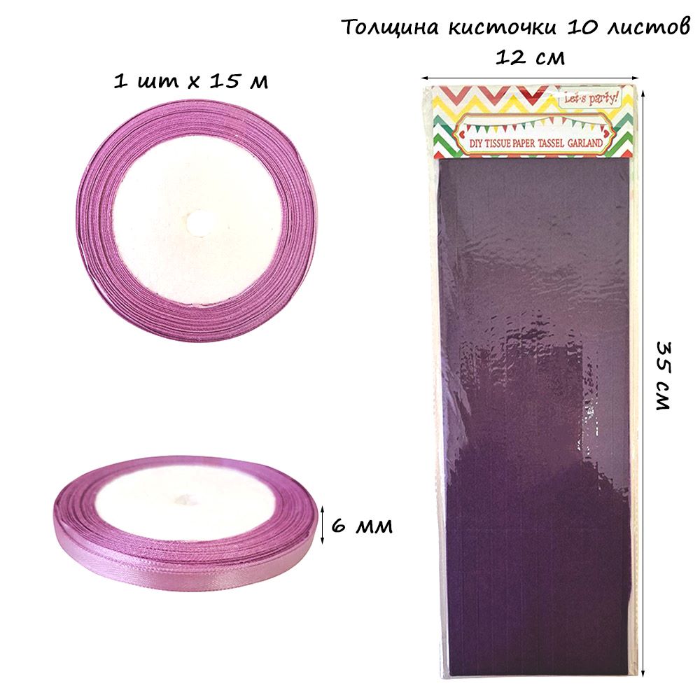 Гирлянда тассел 12 кисточек по 10 листов, фиолетовый