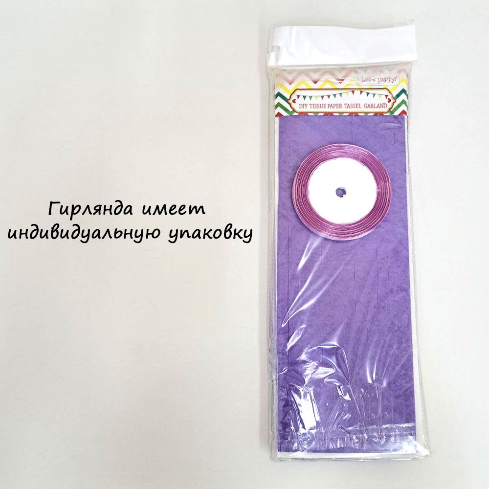 Гирлянда тассел 12 кисточек по 5 листов, светло-сиреневый