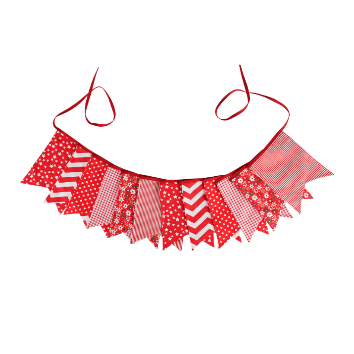 Гирлянда состоит из 12 флажков, общая длина составляет 3,4 м, расстояние между флажками 3 см, длина матерчатых флажков 2,1 м, длина лямок с обеих сторон по 50 см