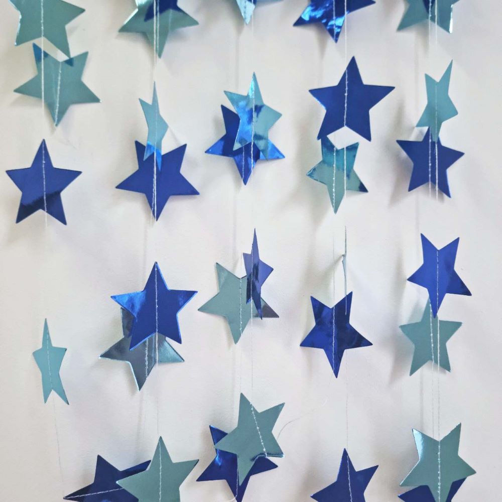Гирлянда "Звезды" металлик 7 см х 4 м, голубой+т.синий