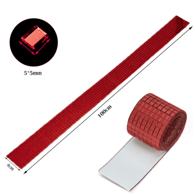 Лента самоклеящаяся зеркальная мозаика акрил 4см х 1м 5х5мм, красный