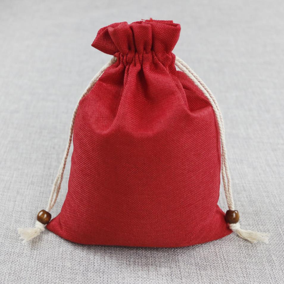 Мешочек из искусственного льна 10х14 см, красный