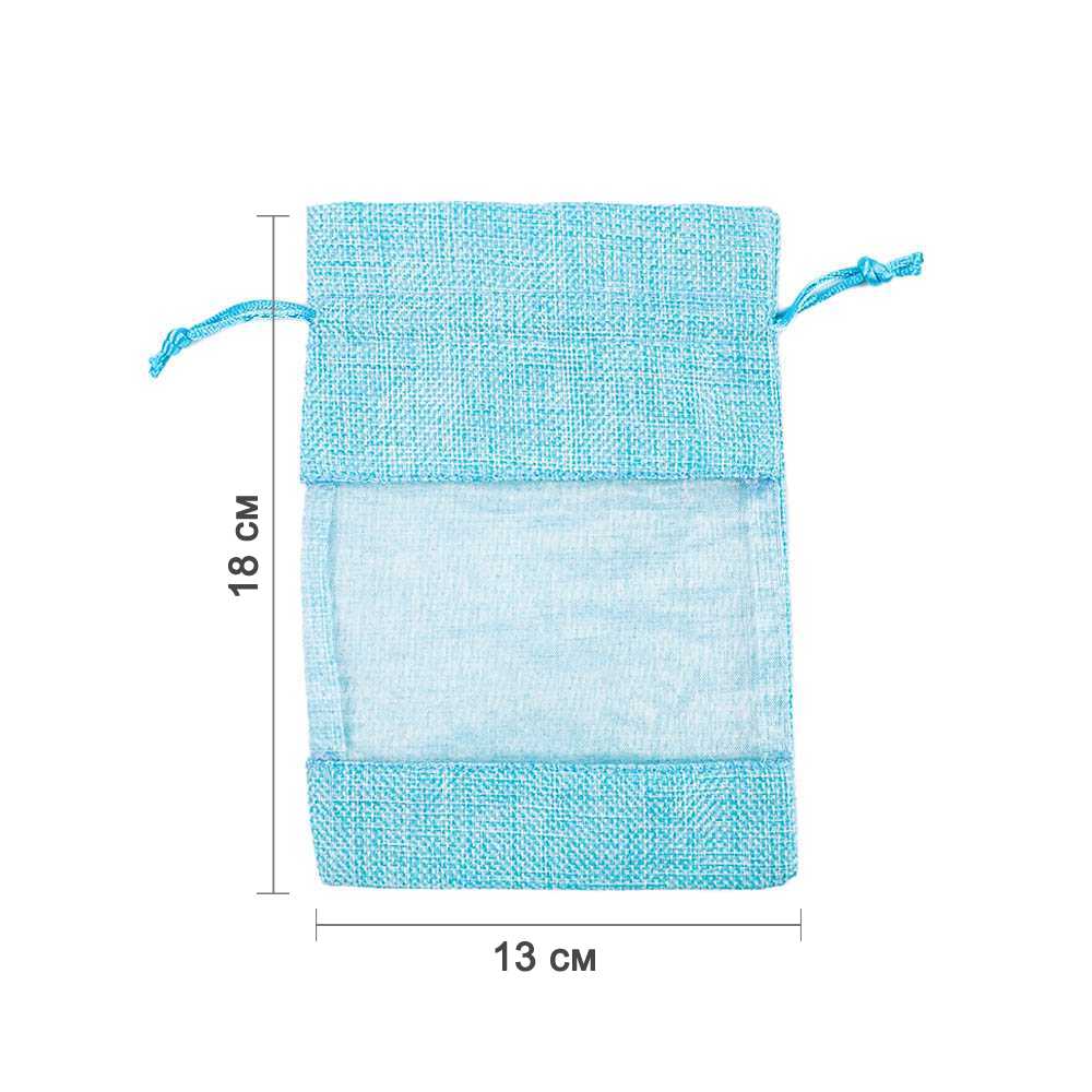 Мешочек из мешковины и органзы 13х18 см голубой