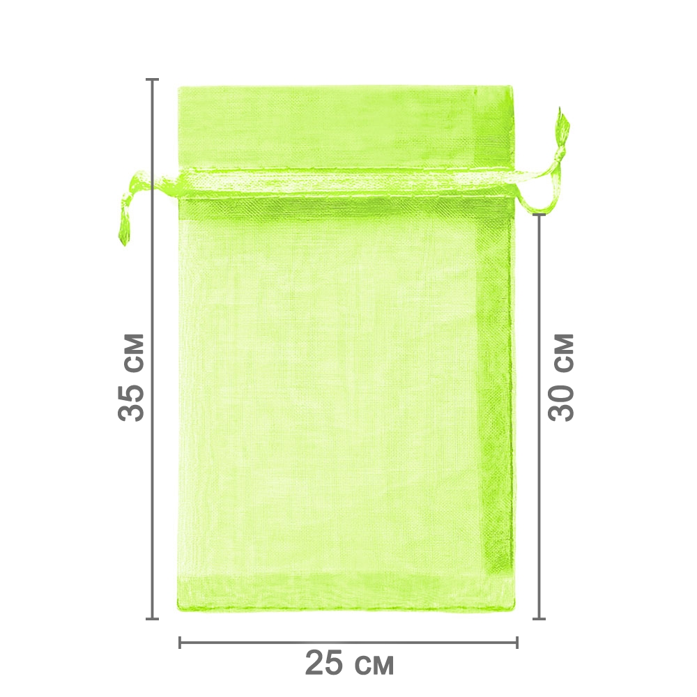 Мешочек из органзы 25 х 35 см — практичный аксессуар для упаковки крупных предметов и подарков. Лёгкая ткань подчёркивает содержимое и придаёт праздничный вид.