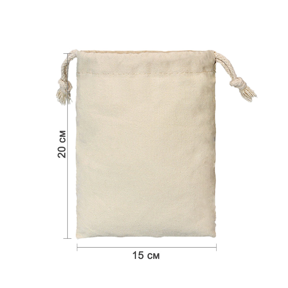 Мешочек из хлопка 15×20 см — универсальная упаковка для подарков, хранения и творчества. Натуральный хлопковый материал приятен на ощупь и подходит для украшений, сувениров, косметики, сладостей и других мелочей. Лаконичный дизайн делает мешочек удобным решением как для подарочной упаковки, так и для повседневного использования.