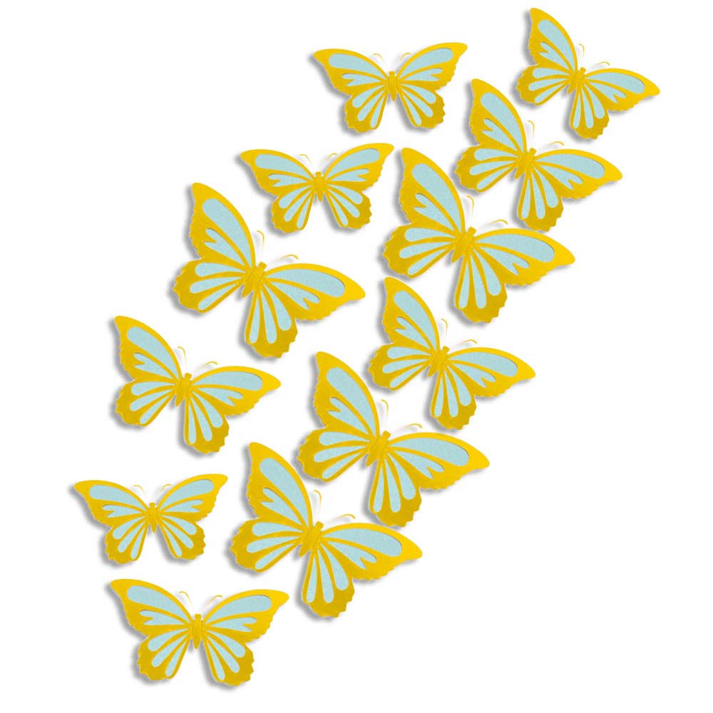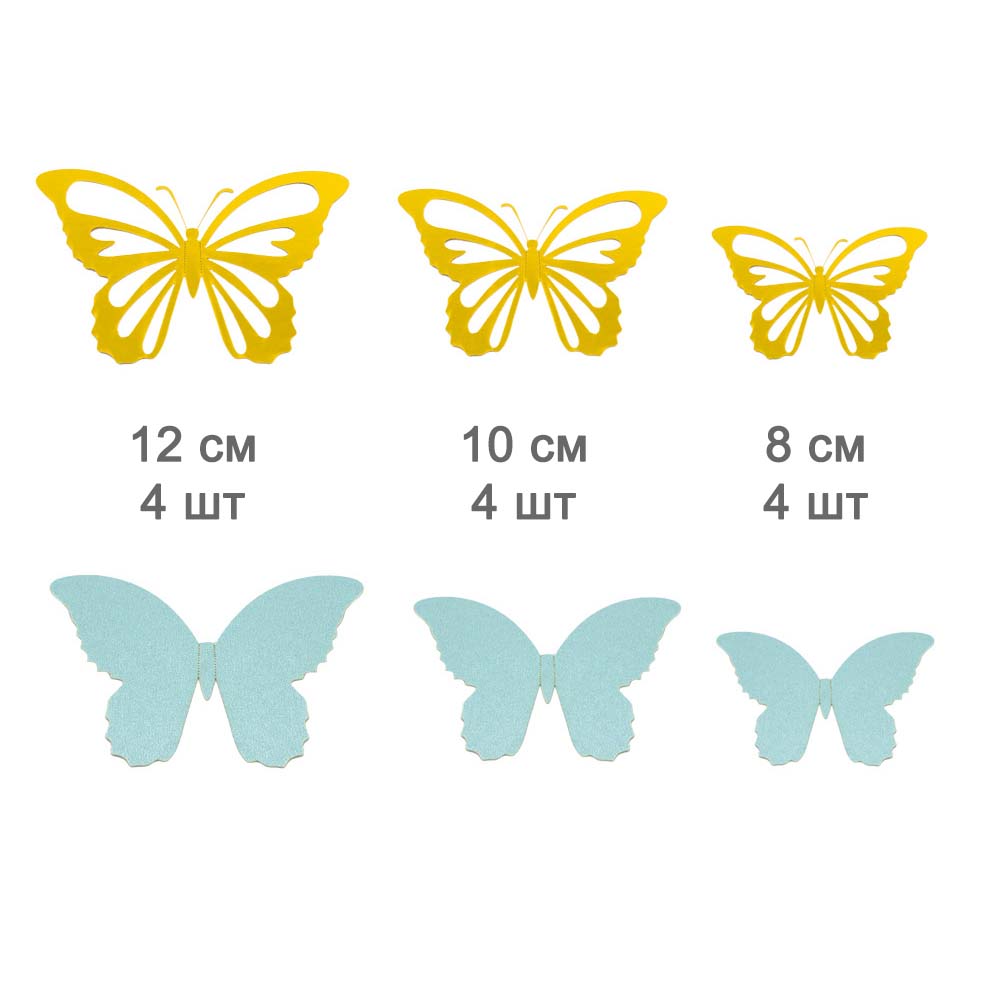 Наклейки Бабочки двойные перламутровые бумажные № 6 12 шт золото+голубой