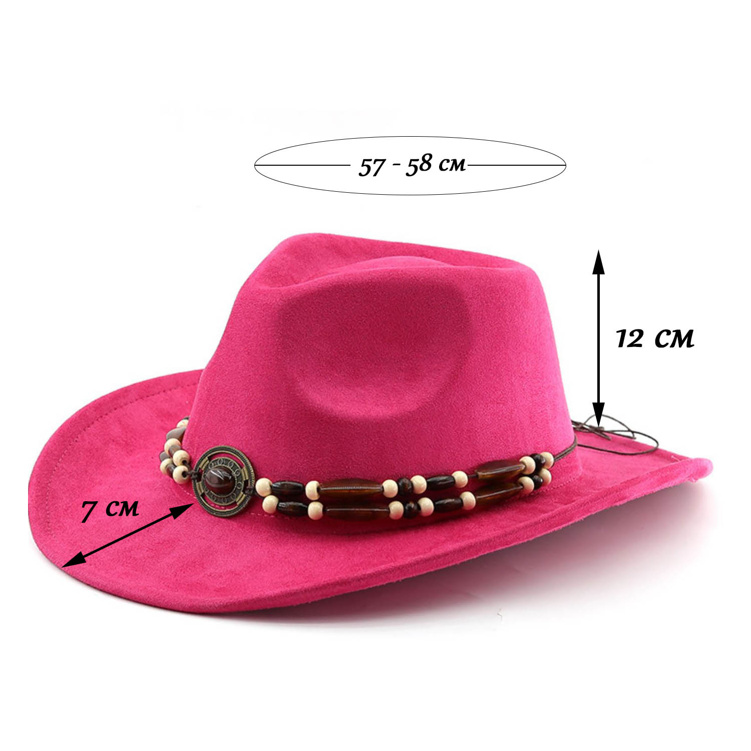 Окружность замшевой ковбойской шляпы: 57-58 см.