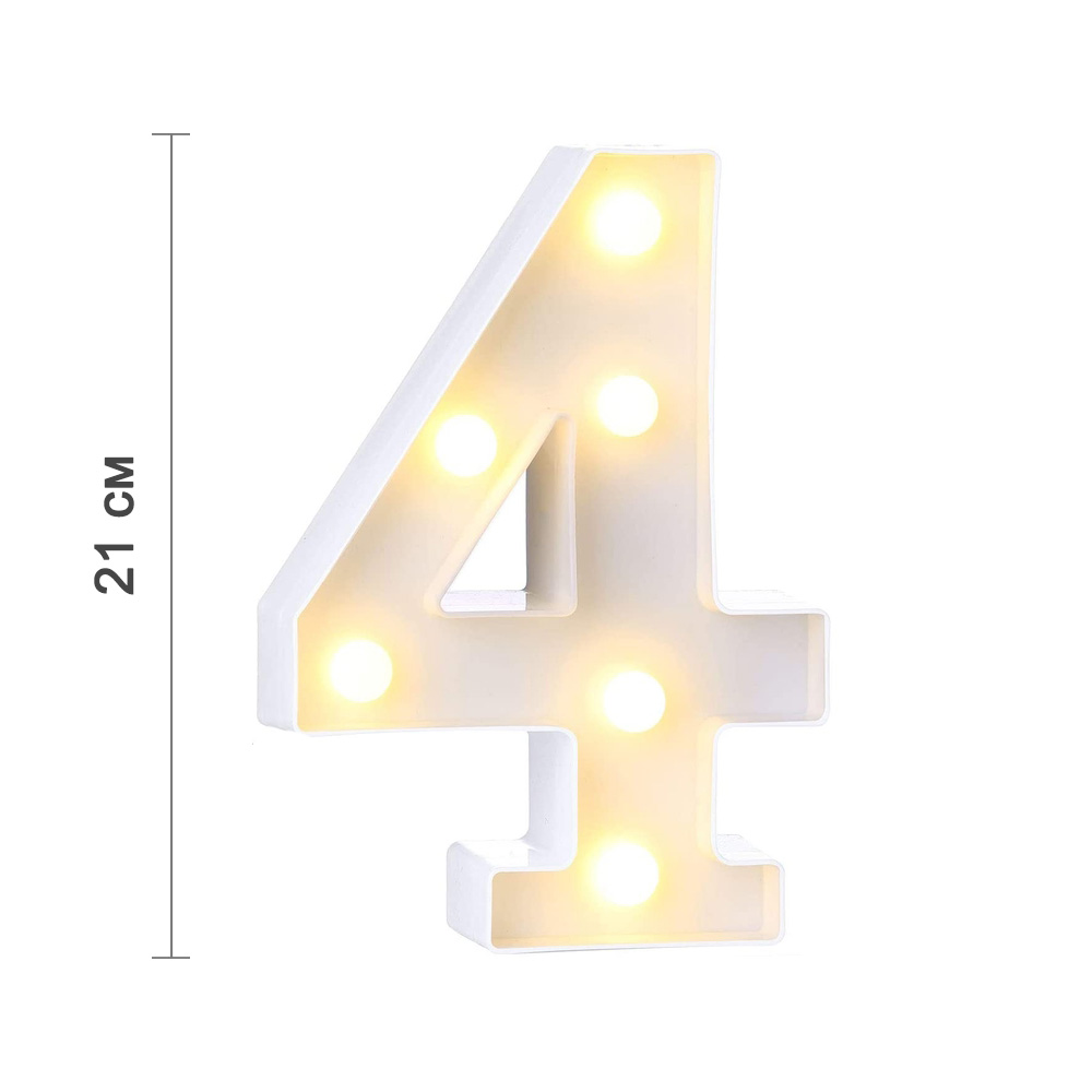 Цифра 4 светодиодная 21 см, от батареек , теплый белый