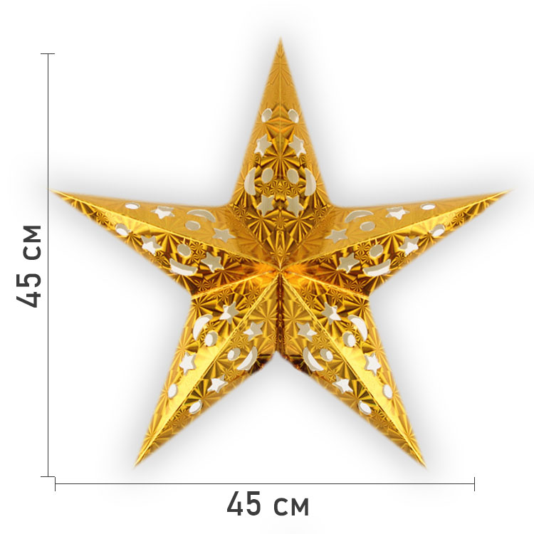 Звезда бумажная 45 см голографическая золотая